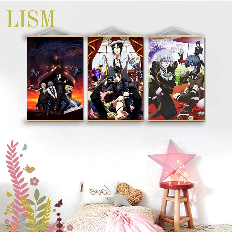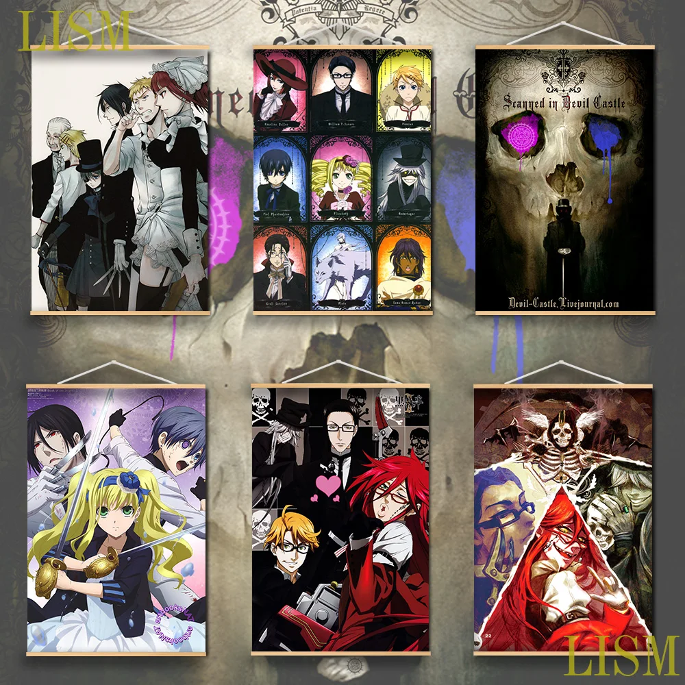 Настенный постер с изображением черного Батлера Элизабет грелла Вильяма Рональда Себастьяна манги из массива дерева подвесной свиток на холсте