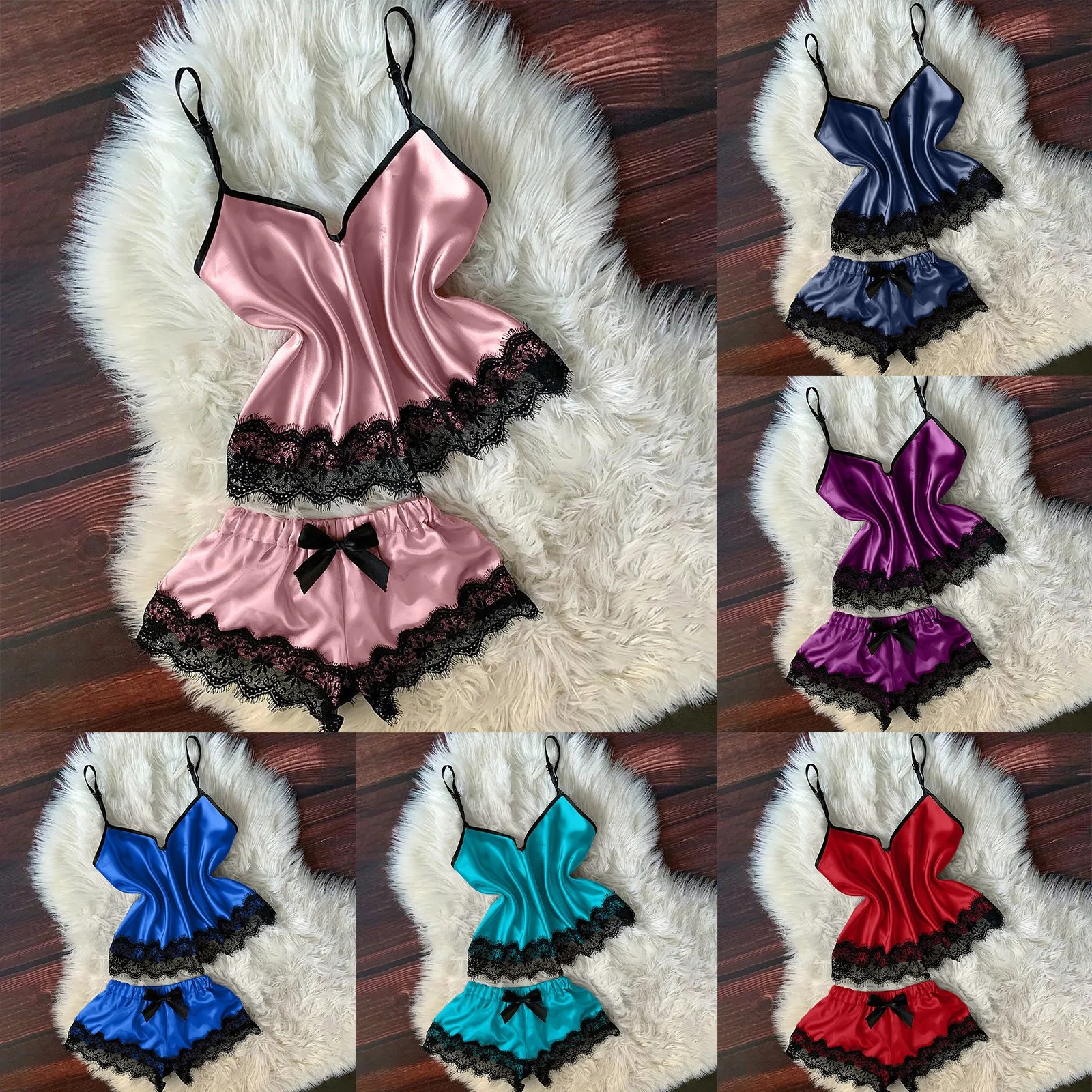 Номер моделиLace Trim Satin Cami Top Pajama Sets