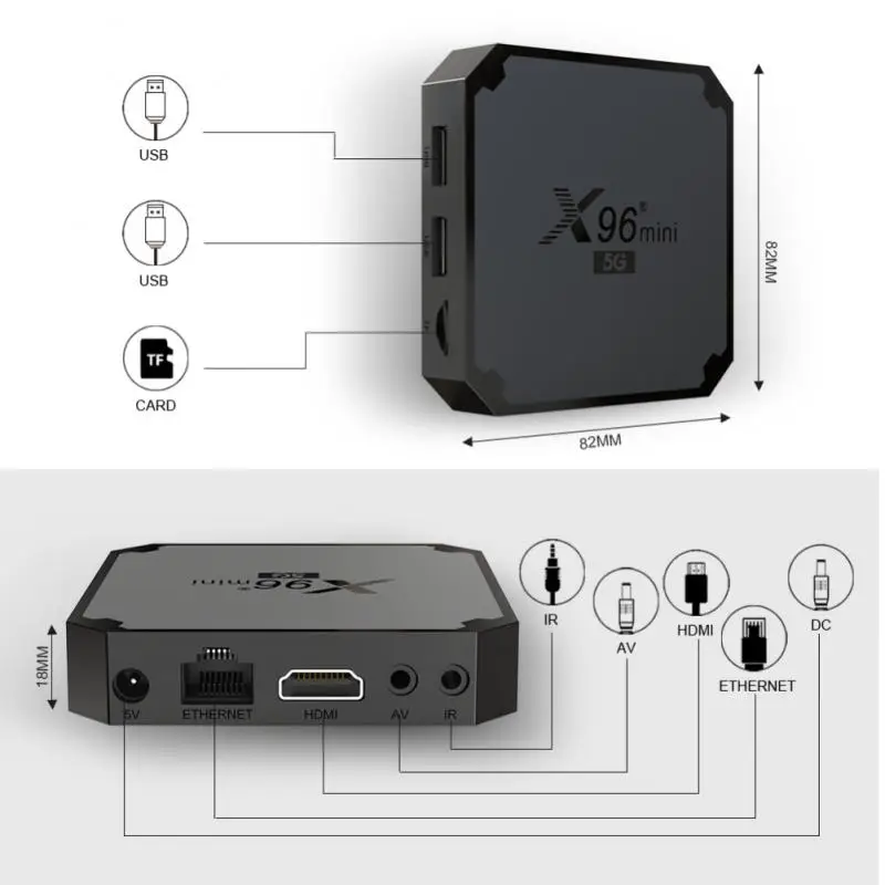 X96 Мини Android ТВ коробка X96mini Android 9,0 Смарт ТВ контейнер под элемент питания 2 Гб оперативной памяти, 16 Гб встроенной памяти, процессор Amlogic S905W 4 ядра 2,4 ГГц Wi-Fi Android 9,0 1GB8GB