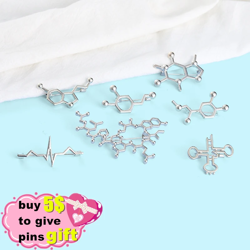 Броши с молекулярной структурой, значки с химической формулой, индивидуальный ЭКГ, гормон любви, химические украшения, подарок для учителя, медсестры, оптовая продажа