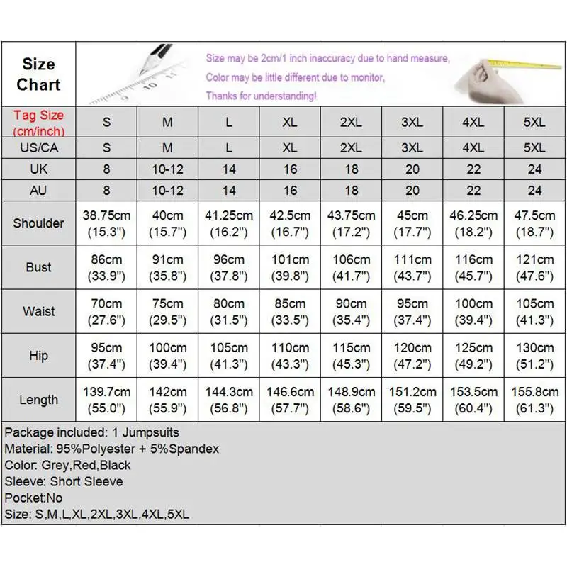 Посылка включает в себя: 1 комбинезонМатериал: 95% полиэстер + 5% спандексЦвет: серый, красный, черныйРукав: короткий рукавКарман: нетРисунок: принтДлина: полная длинаОсобенности: плиссировка, без бретелекСтиль: Повседневный, Европейский, литературный, модныйСезон: летоПовод: Семейные, вечерние, пляжные, свадебные, праздничные, вечерние, дорожные, повседневныеВнимание:1. Перед покупкой, пожалуйста, проверьте размеры в таблице размеров!2. Размер может быть неточным на 2 см/1 дюйм из-за ручного измерения, цвет может немного отличаться из-за монитора, спасибо за понимание!3. Предложение холодной воды ручная стирка. Это может помочь предметам сохранить свою форму.