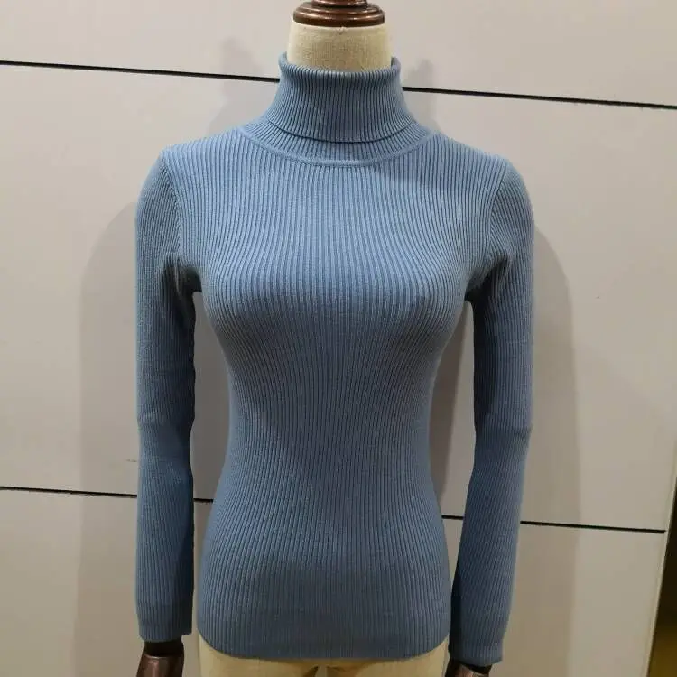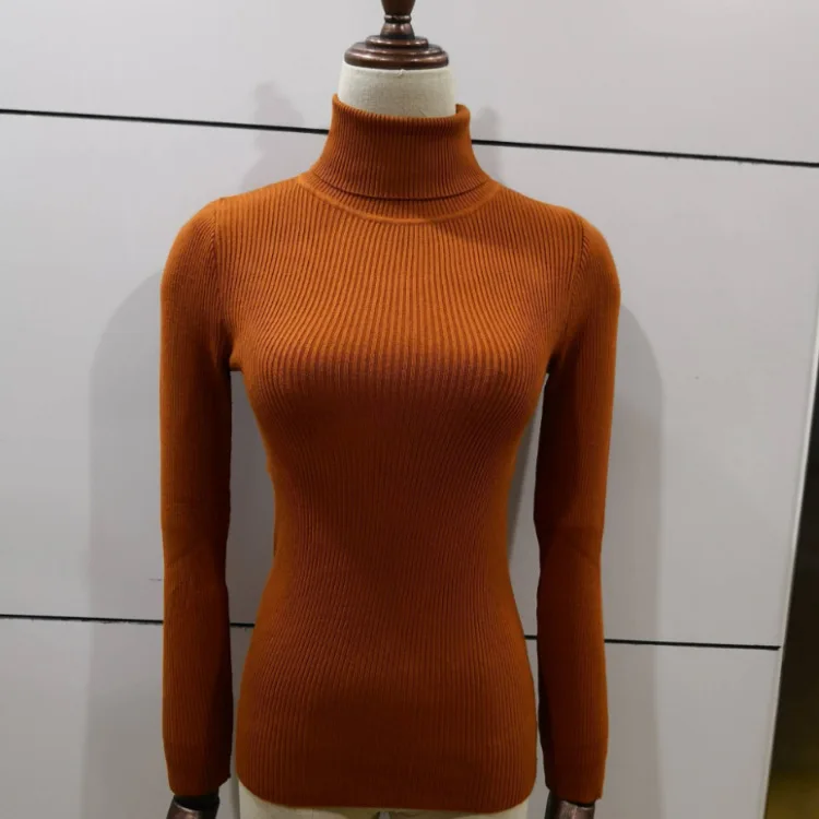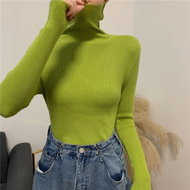 ОсеньЗима 2021 новый вязаный пуловер Водолазка пуловер Повседневная куртка с длинным рукавом облегающий Однотонный свитер для женщин