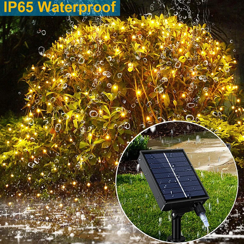 Сказочная гирлянда на солнечной батарее, праздничное рождественское освещение с дистанционным управлением для сада, газона, забора, 3 х2 м, 192 светодиода, 8 режимов