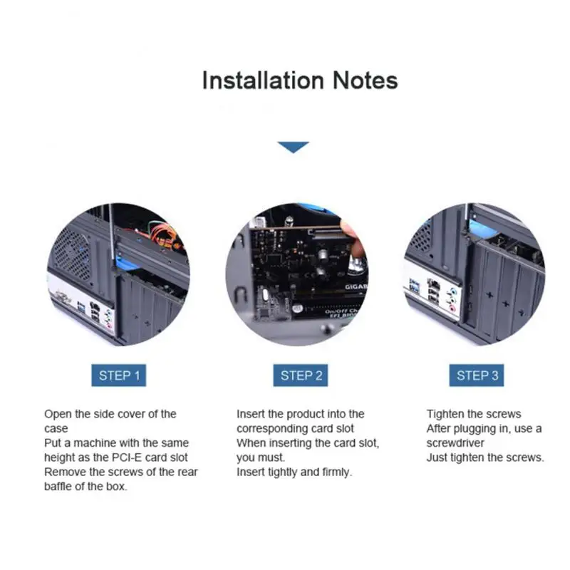 Его легко установить в соответствующий разъем PCI Express шасси, и расширение быстрее. Продукт поддерживает горячее переключение, мгновенный запуск, легко заменить несколько USBs, и нет необходимости отключать систему при подключении/отключении устройств.