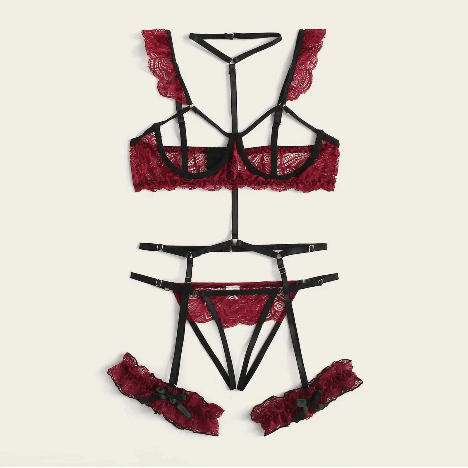 Сексуальное модное кружевное нижнее белье, новое нижнее белье со стальными кольцами, пижама с подвязками, женская одежда для сна, интимное нижнее белье, комплект с бюстгальтером и трусиками T6