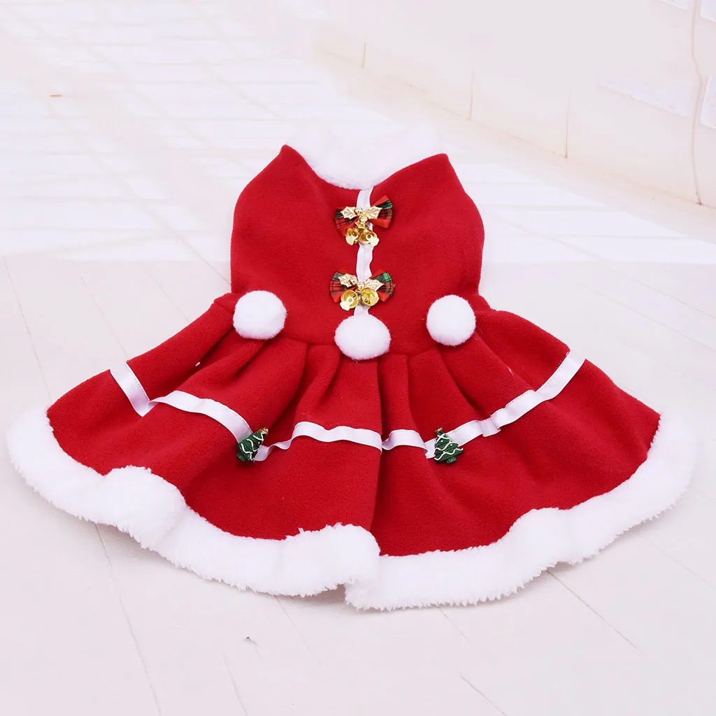 Теплое плюшевое платье для собаки Рождественская елка колокольчики платья для котят щенков зимнее платье для домашних животных кошек собак платья для собак