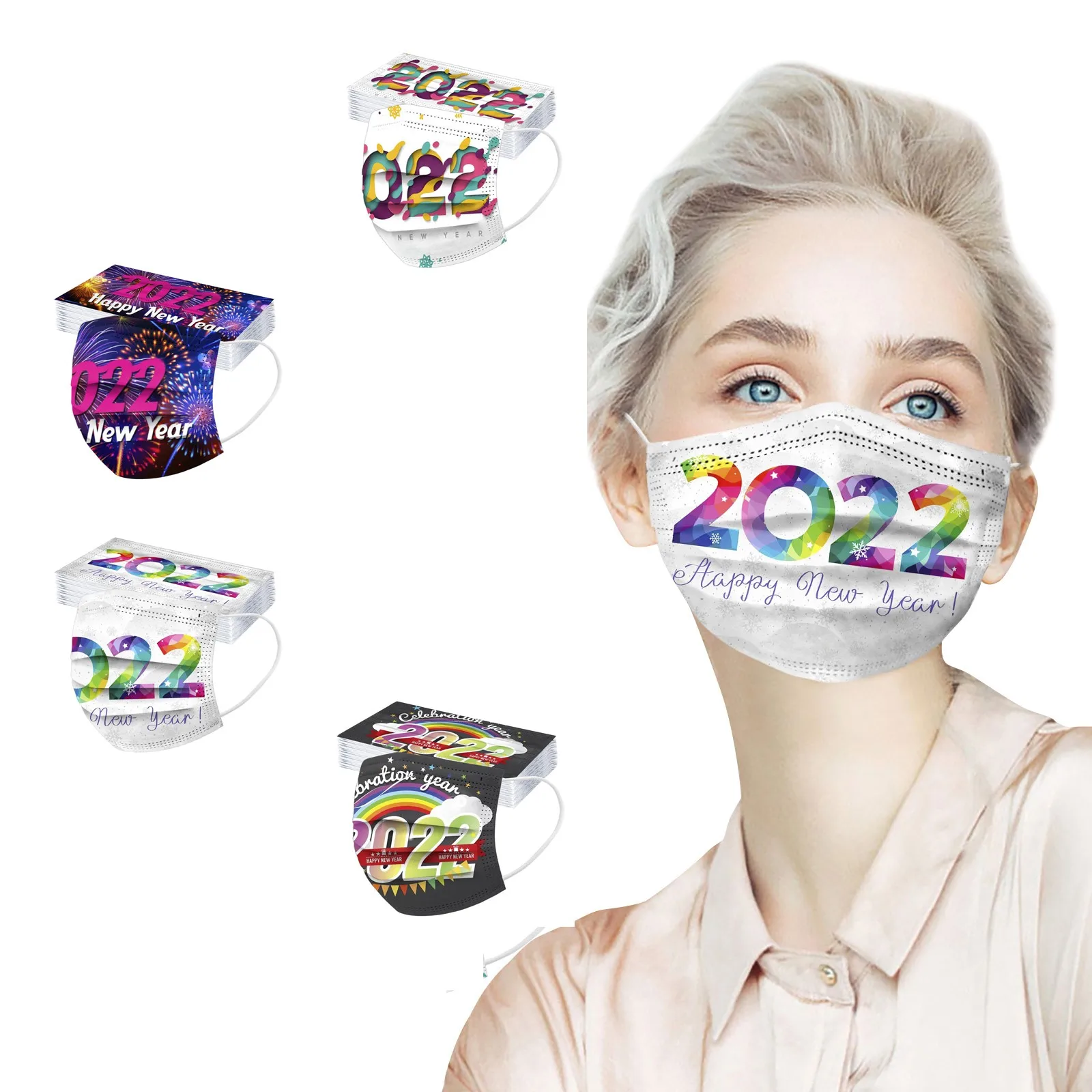 Маска одноразовая для лица, с принтом на новый год 2022, 3-слойная,...