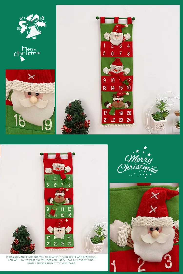 Новый год 2022, Рождественский календарь с навесом на стену, изысканный Санта-Клаус, войлочный календарь, календарь с обратным отсчетом, Рождественский Декор для дома