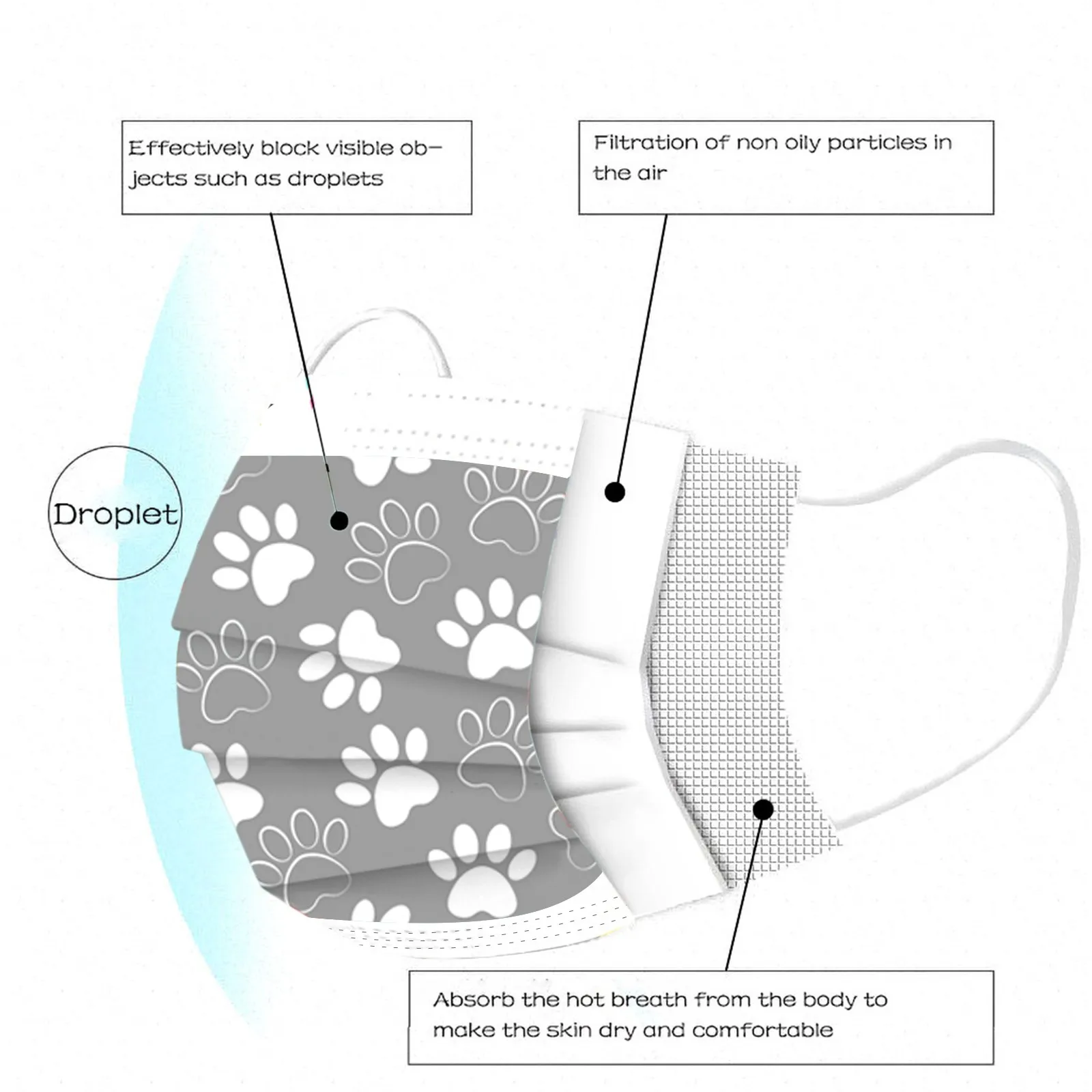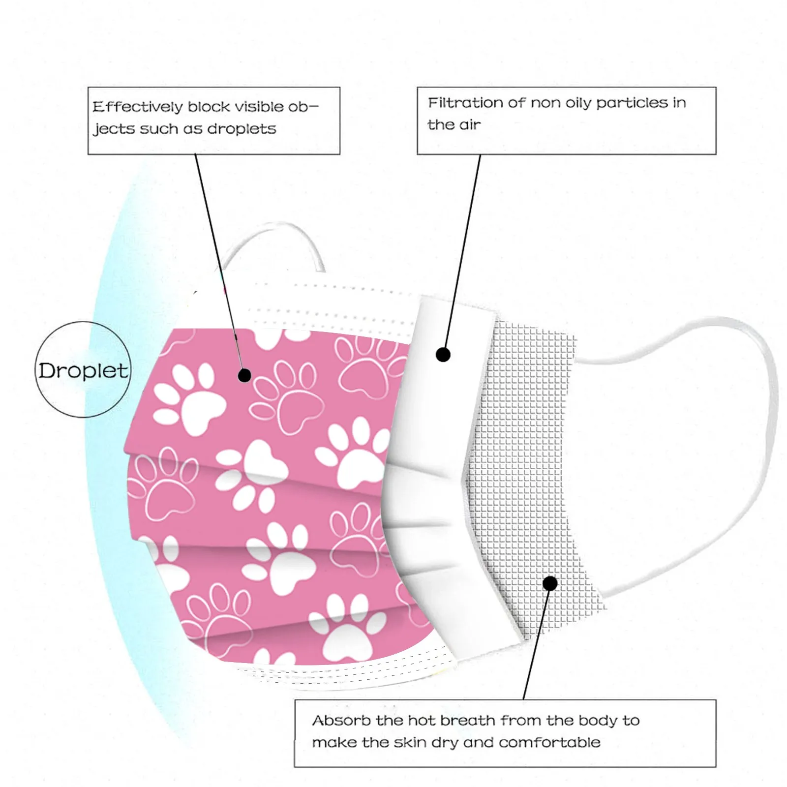 Идеальный дизайн, когда вы носите его, он легко помещается в лицо. Эластичная Ушная петля легко носить и не давит на уши.
