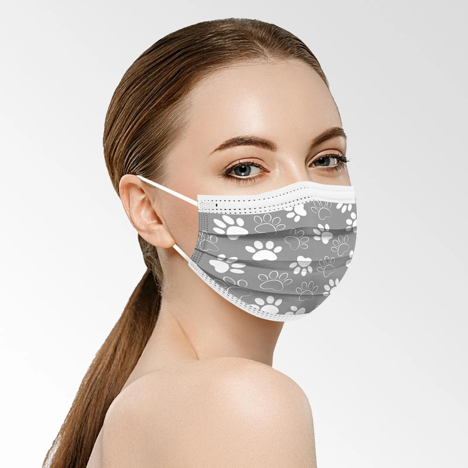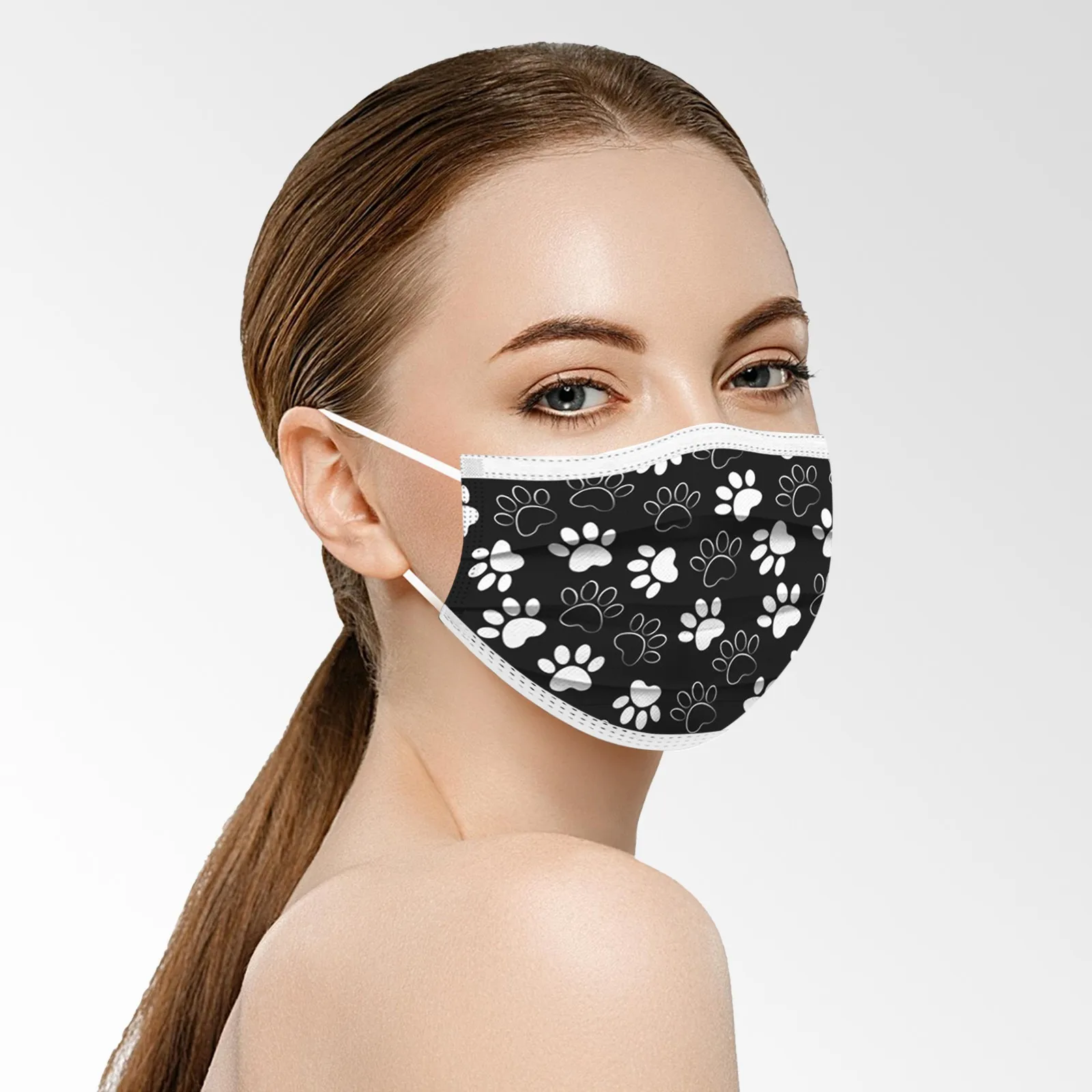Маска Защитная одноразовая трехслойная с рисунком ног собак, 10 шт.