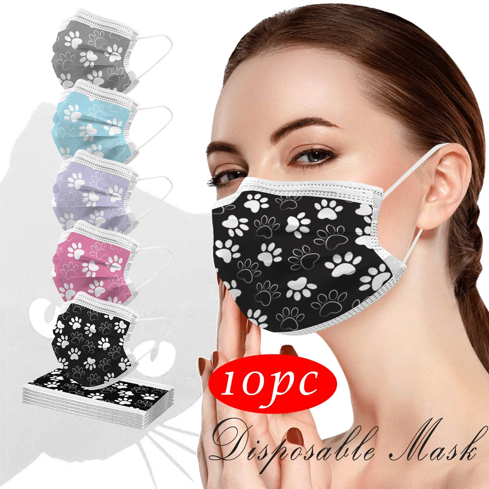 10 шт. взрослых милый Повседневное принтами кошек мультфильмов дышащий 3-Слои одноразовые маски