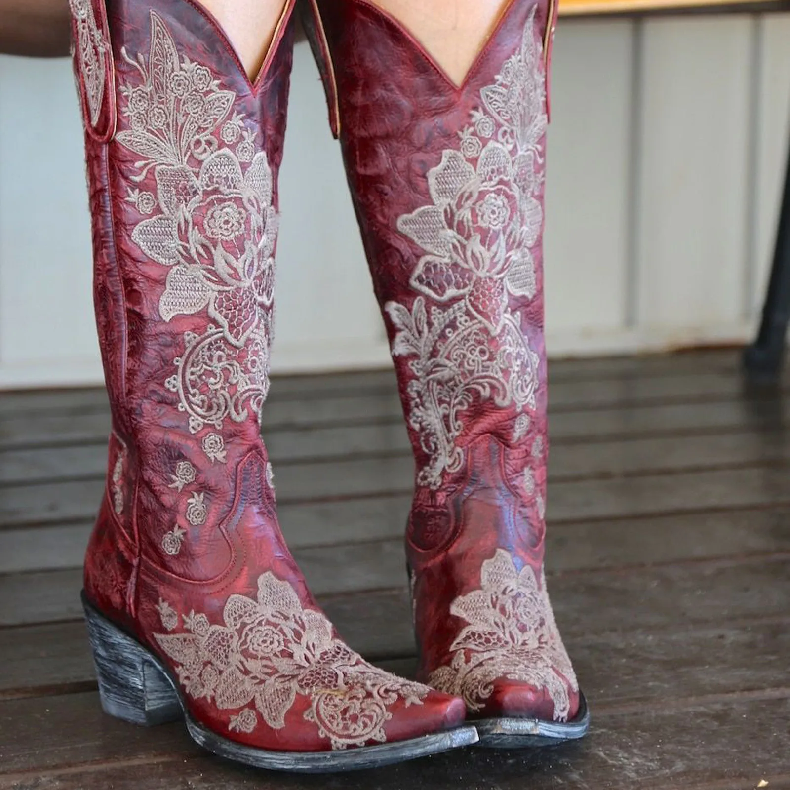 Женские модные ботинки с вышивкой; Ботинки в стиле ретро на среднем каблуке; Ковбойские ботинки