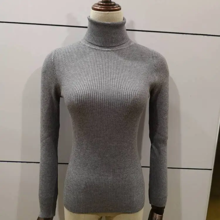 Пуловер женский трикотажный, с высоким воротом, однотонный, Осень-зима