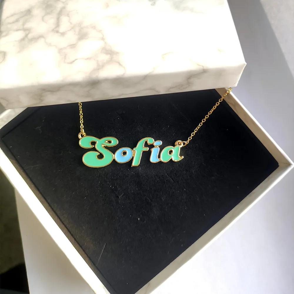 Цветное ожерелье DUOYING с ярким именем, ожерелье с индивидуальным именем, ожерелье с эмалью яркого цвета, персонализированные подарки, рождественский подарок