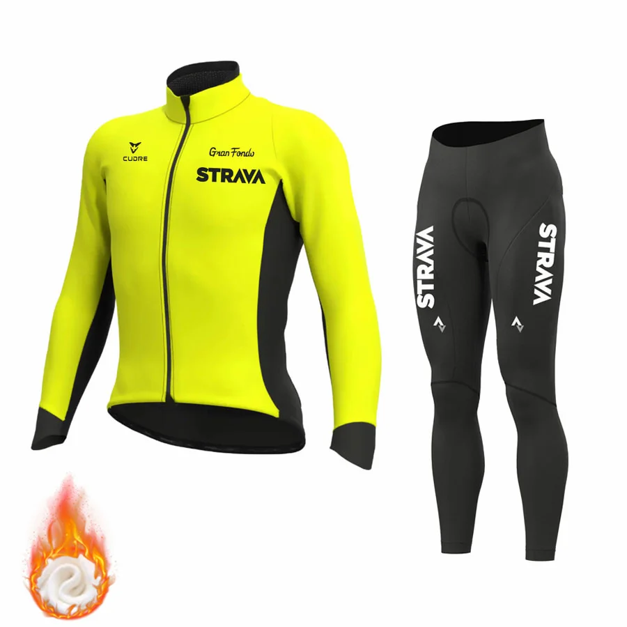 Зима 2022, трикотажный комплект для велоспорта STRAVA, Мужской флис...