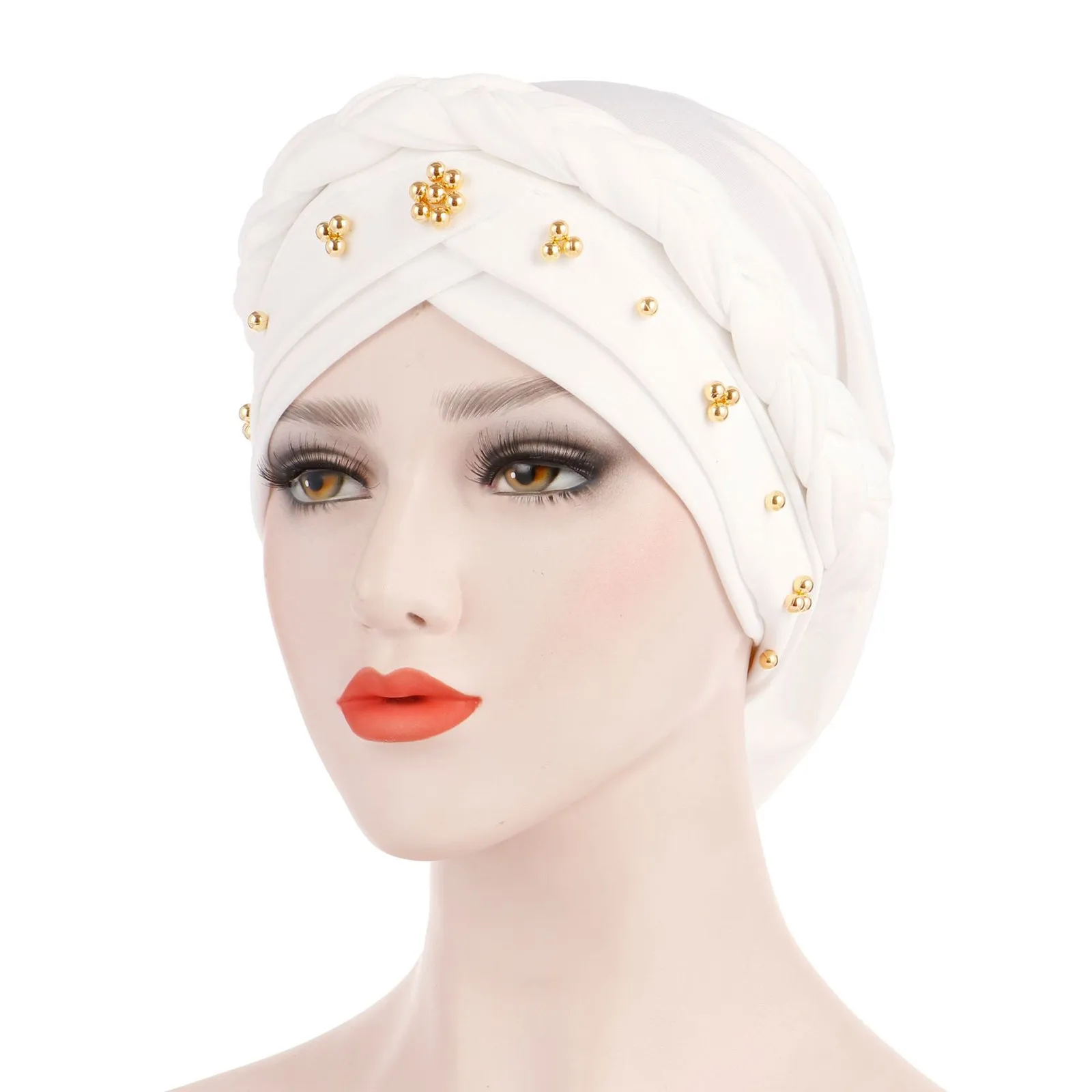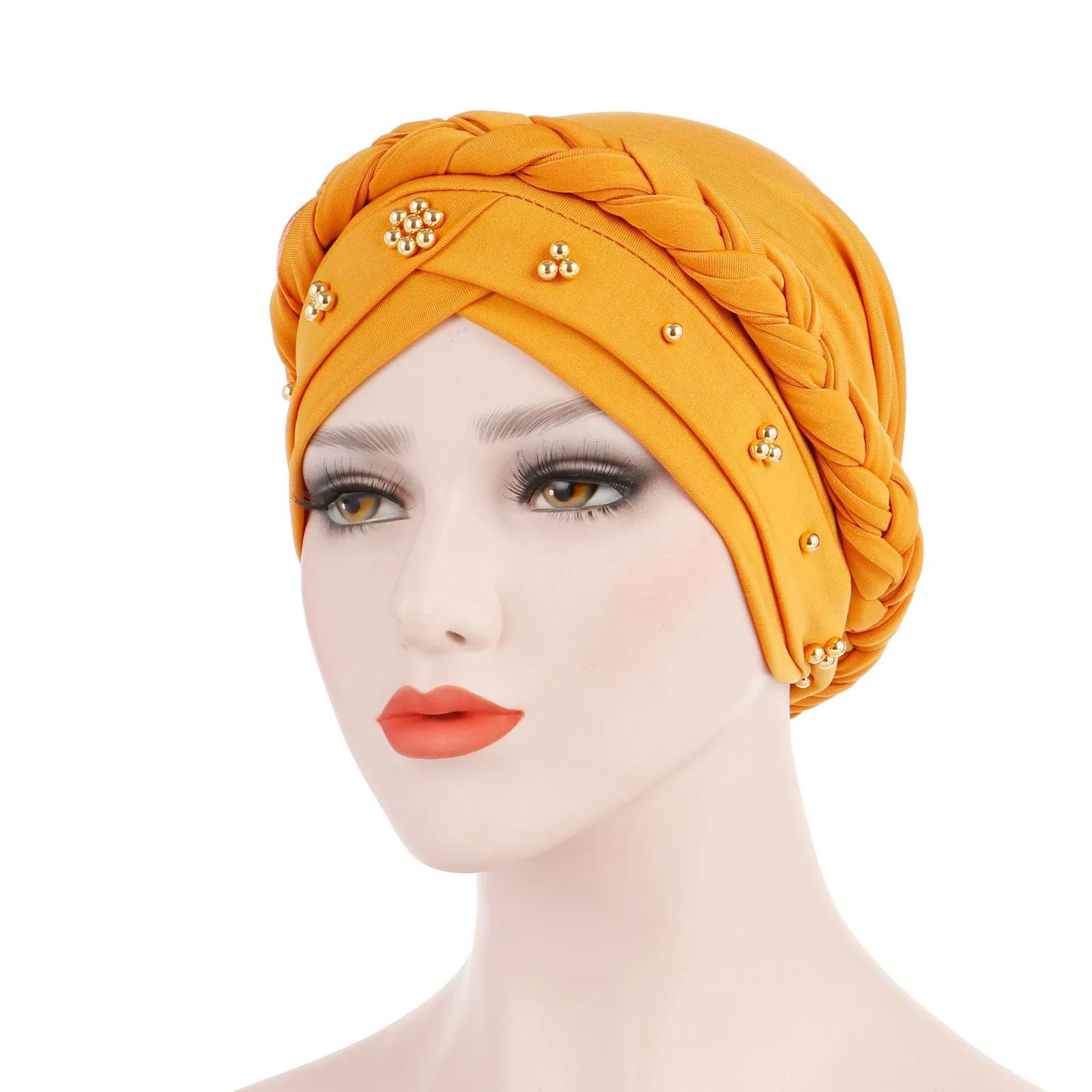 Женская шапка-тюрбан, головной платок из бисера, шапочка в виде скрученной косы, головной убор
