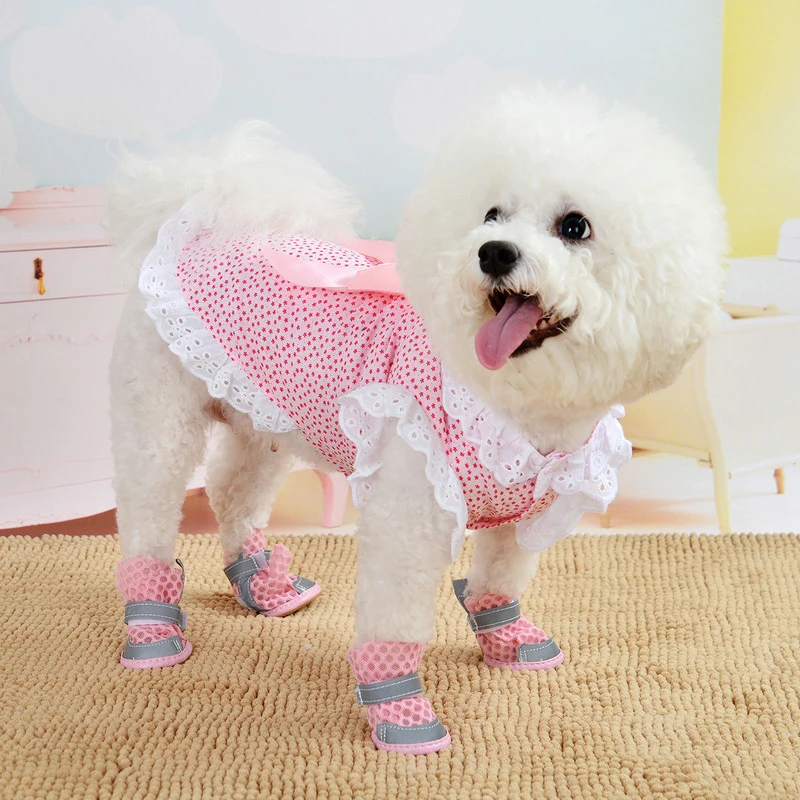 Одежда для кошек, женское хлопковое кружевное Цветочное платье, летнее платье для собак с большим бантом, одежда для маленьких и средних собак