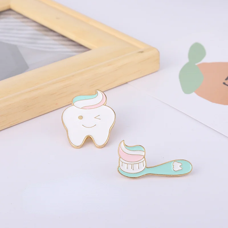 Эмалированная булавка для зубов и щетки на заказ, стоматологические значки, медицинские броши, милая бижутерия для зубов, подарок для медсестры, стоматолога, оптовая продажа