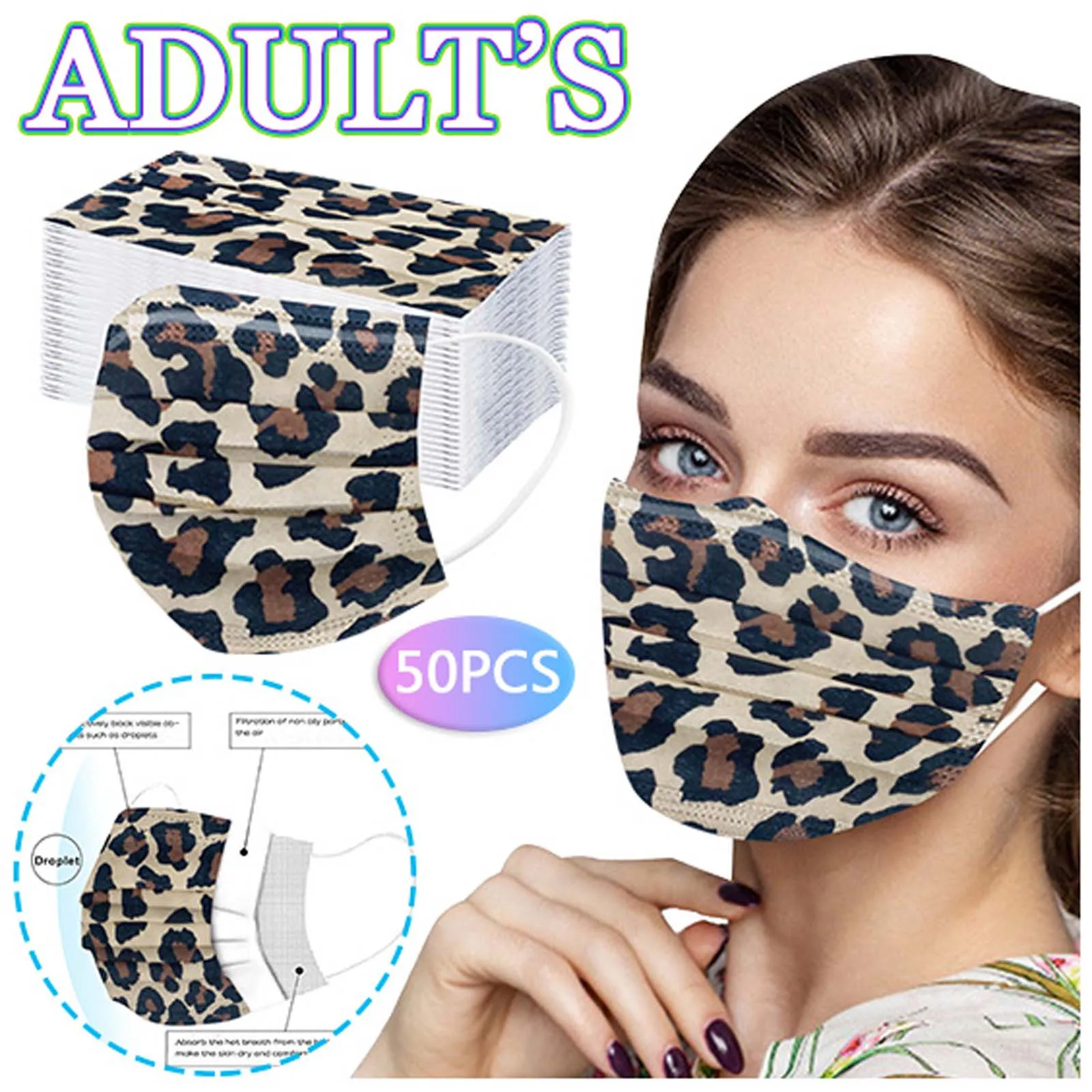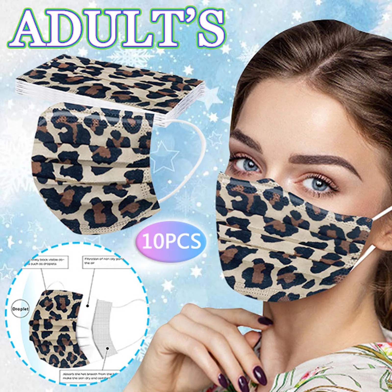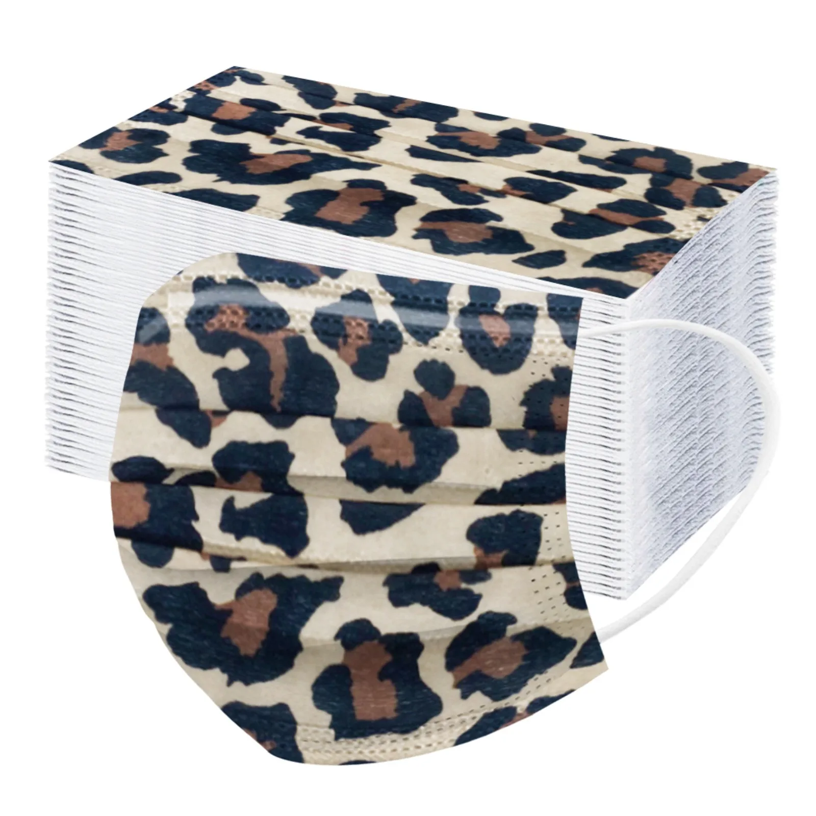 10-100 шт., трехслойная одноразовая маска для лица с леопардовым принтом