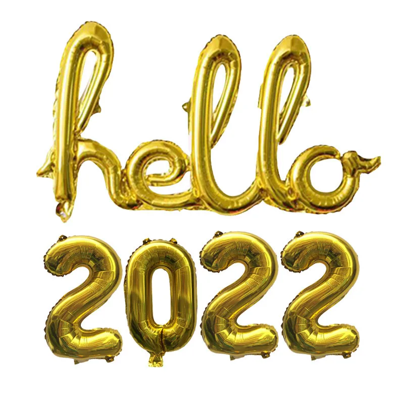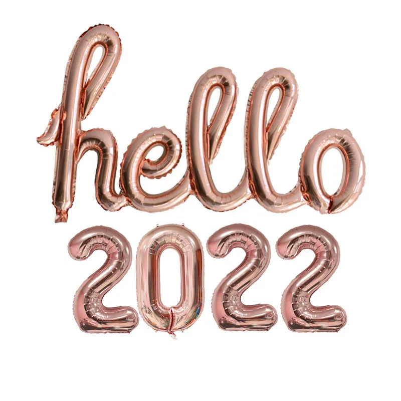Розовое золото с новым годом 2022 фольги шары Hello 2022 номер SilverLetter воздушный шар новогодние украшения