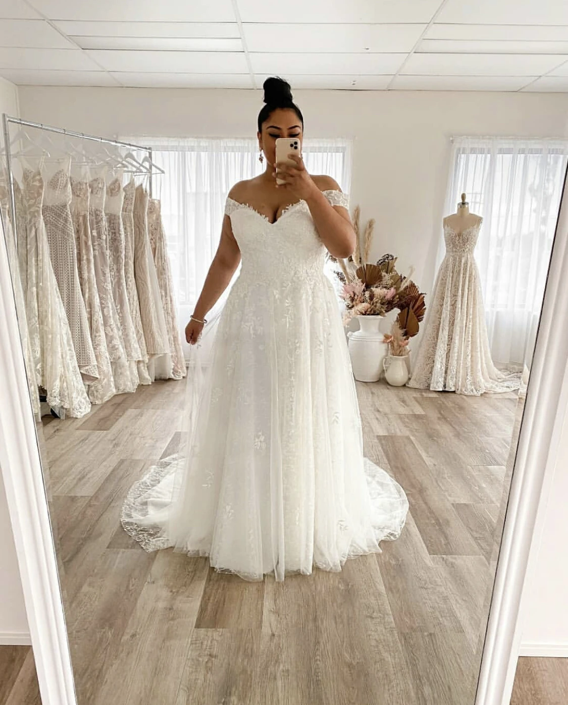 Женское свадебное платье с открытыми плечами Vinca Sunny, ТРАПЕЦИЕВИДНОЕ кружевное Тюлевое платье большого размера с аппликацией и открытой спиной, свадебное платье со шлейфом