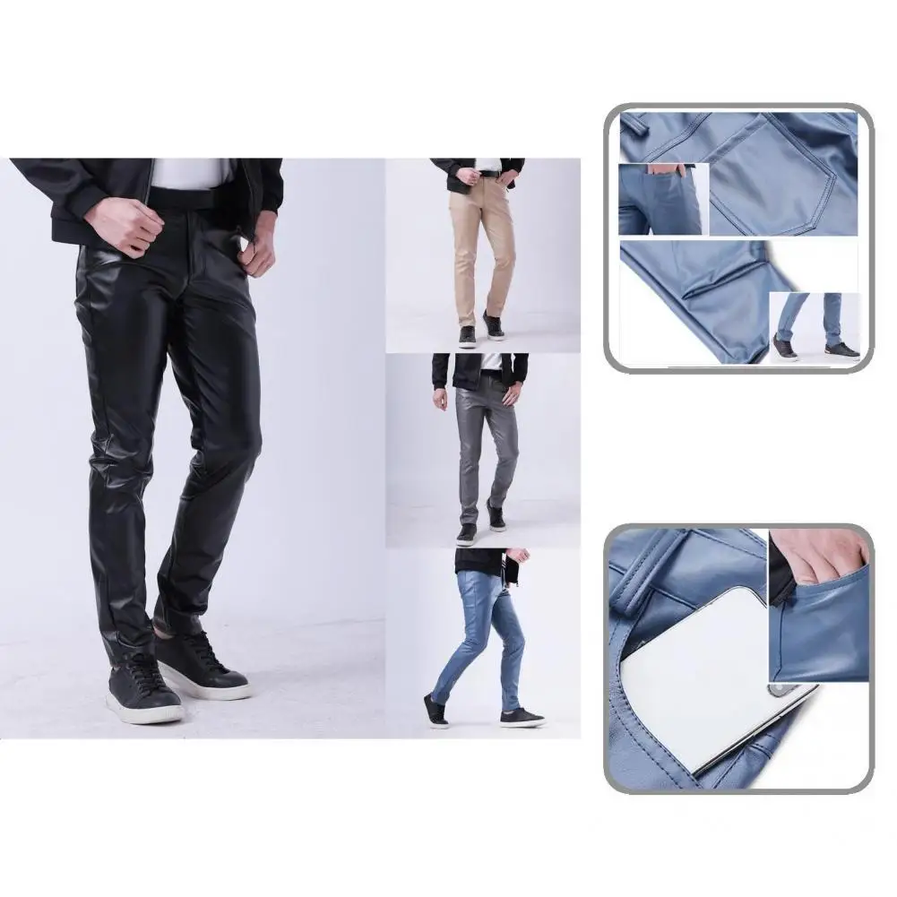 Брюки-Карандаш мужские из искусственной кожи, стильные мягкие эласт...