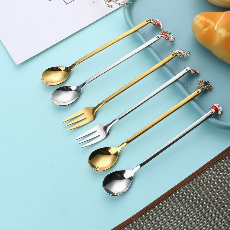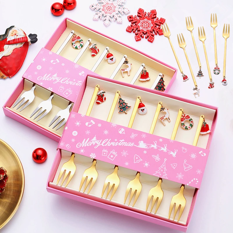 6 шт. металлические кофейные вилки перемешивающие совки рождественские украшения для настольные украшения для дома украшения Navidad 2021 подарок на Новый год,новый год,новый год 2022,новогодние украшения 2021