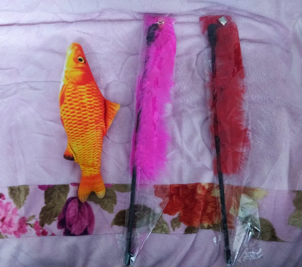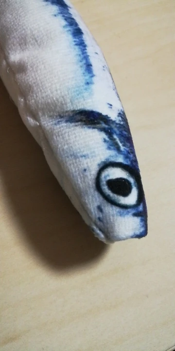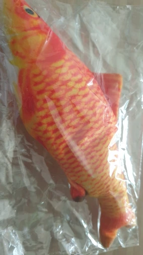 забавная рыбка мягкая сделана вроде неплохо. коты иногда играют и дети тоже)))