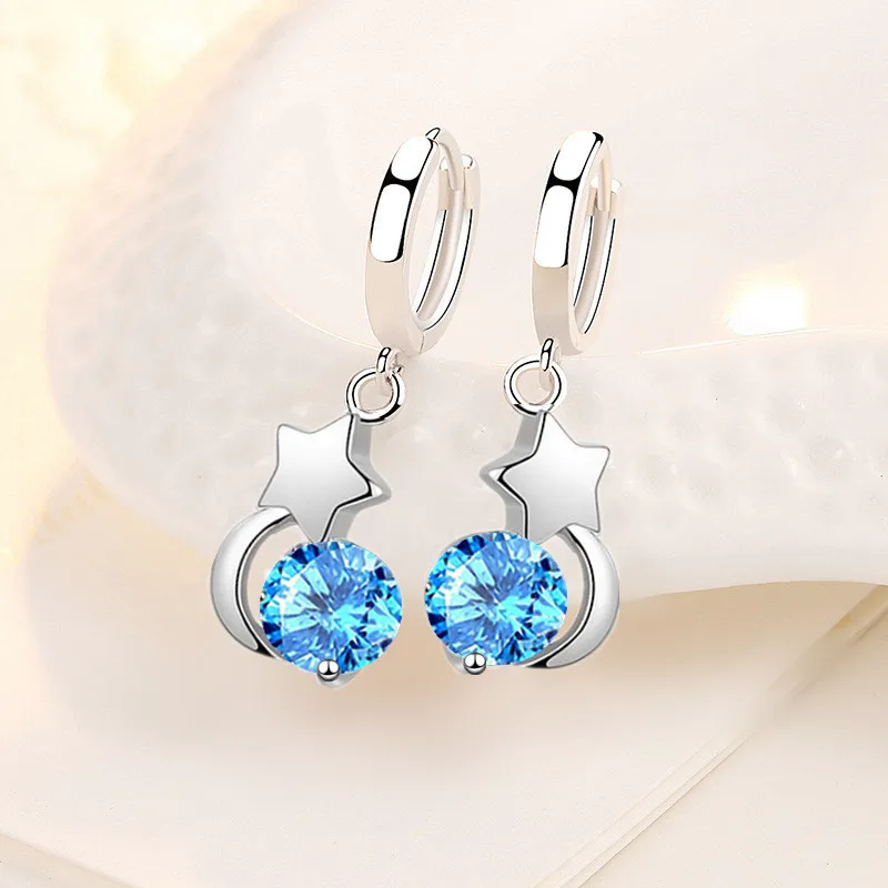 Женские серьги в виде Луны из серебра 925 пробы с голубым и розовым кристаллом