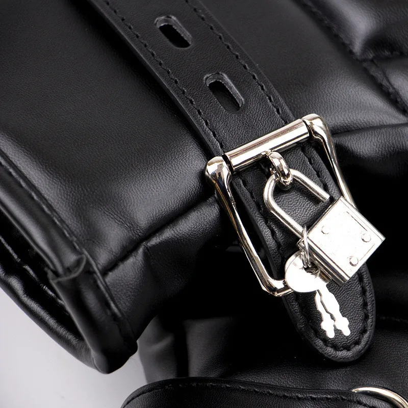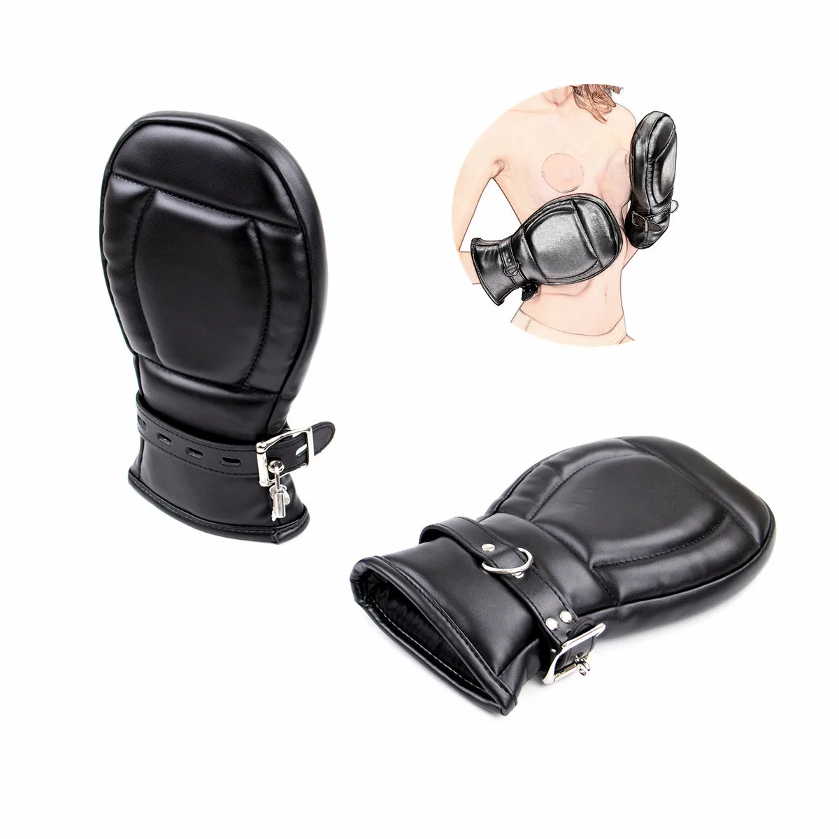 Экзотические костюмы, кожаный фетиш, бондаж для рук, боксерские перчатки с запираемым регулируемым ремешком, аксессуары для косплея