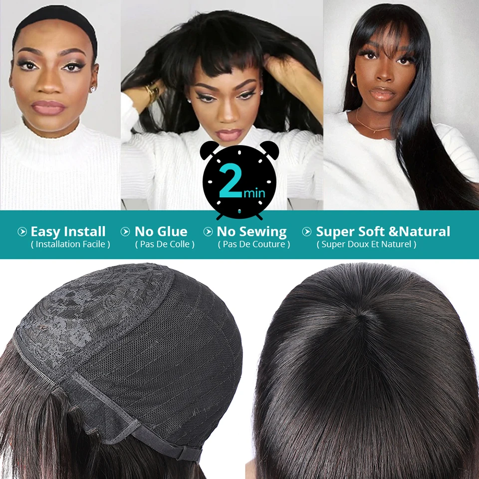 Прямые парики из человеческих волос с челкой, Бразильские короткие парики боб, парики из человеческих волос машинной работы для женщин, парик с бахромой, человеческие волосы