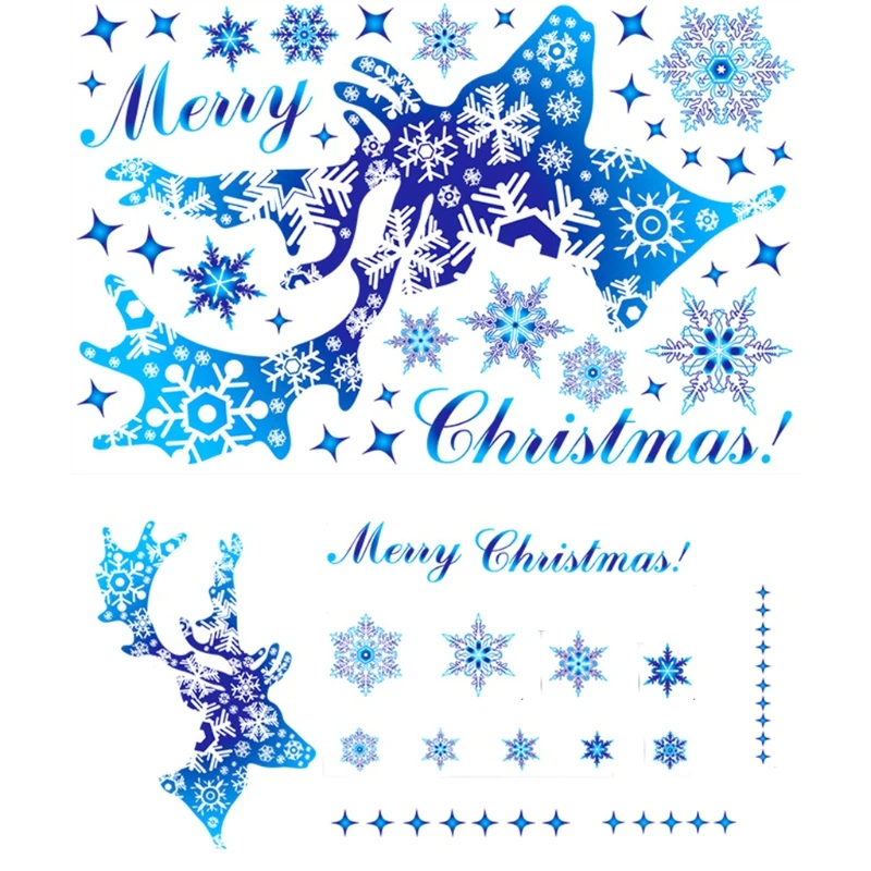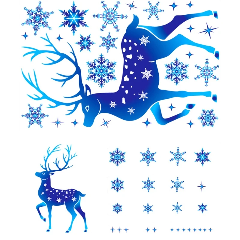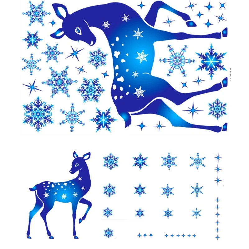1 лист рождественские наклейки на окна с голубым оленем снежинкой и принтом оленя звезды стеклянные дверные наклейки для рождественской тематики праздника R7UB