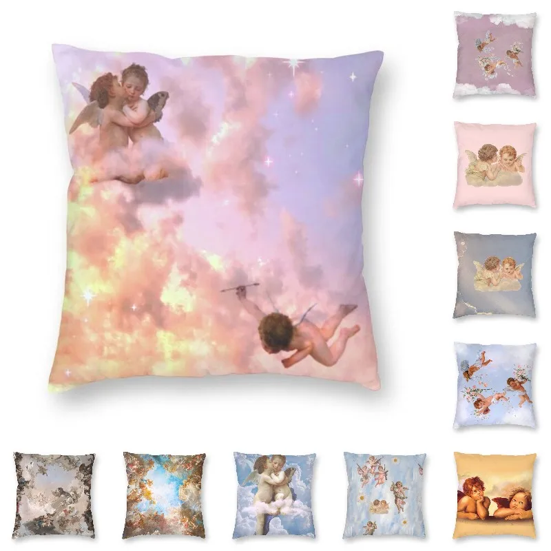 Наволочка для подушки Cherubs, квадратная наволочка для дома, Декоративные крылья, возрождения, ангелы, облака, подушки, декоративная подушка для гостиной