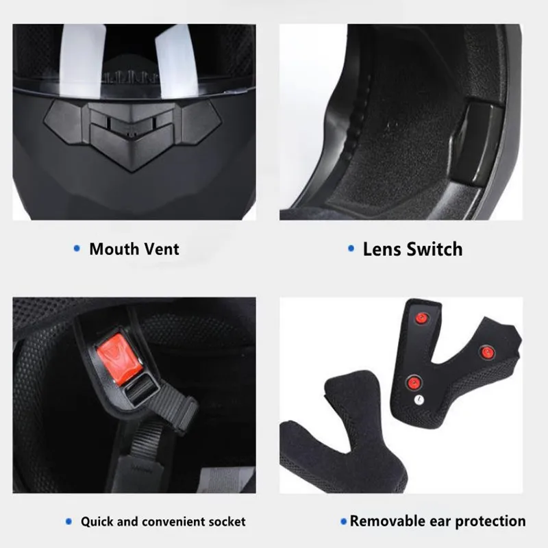 제품의 조립상태가 완벽하지않음 주행시 바람이 많이 들어옴. 풍절음 심함. 바이저는 그냥 투명플라스틱이라서 시야가 불편함. 상단 벤트 없음.(제품 설명에도 표시안되어있음) 장갑도 쓸만한게 아님. 반품 관련하여 판매자와 분쟁시 단답형 대답과 문제해결에 관심이 없는것 같음.