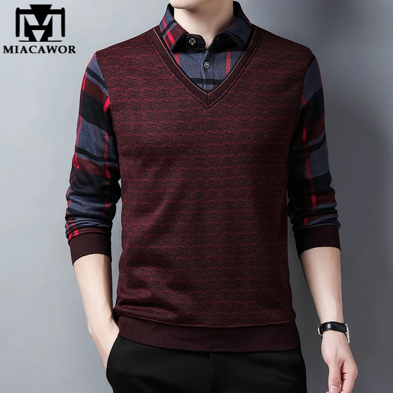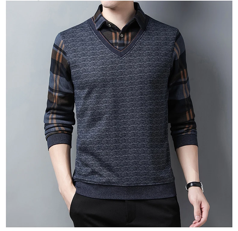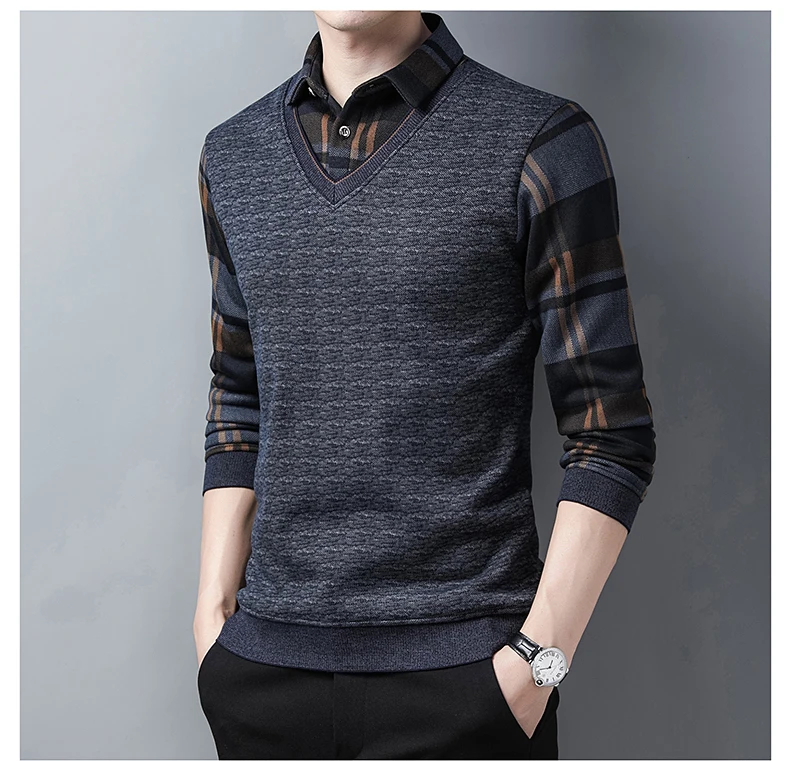 Новинка, брендовый Модный осенне-зимний свитер, Мужская мягкая теплая трикотажная одежда, синель, пуловер, клетчатые Трикотажные изделия, повседневная мужская одежда Y400