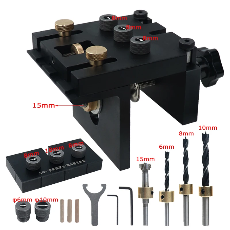 Набор 3 в 1 для деревообработки, направляющая для сверления, регулируемый карманный зажим для отверстий, инструменты сделай сам
