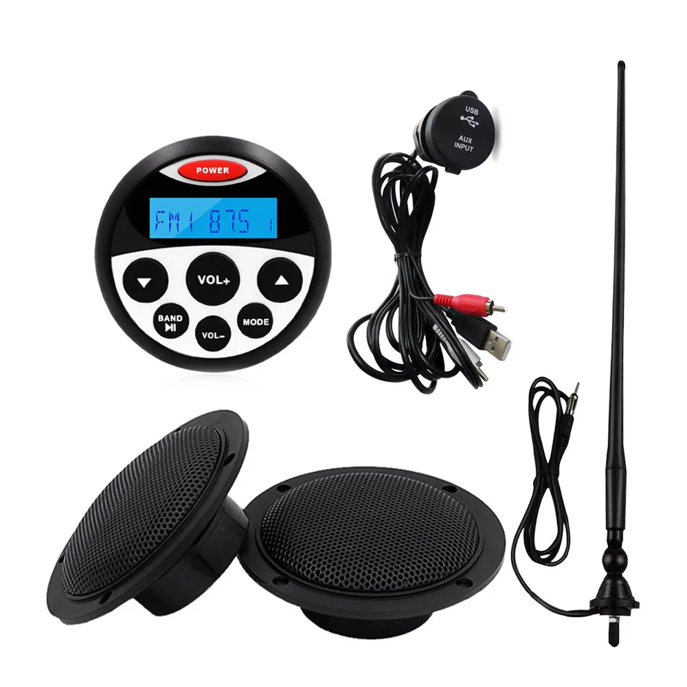 МОРСКОЙ лодочный радиоприемник аудио Bluetooth стерео приемник медиаплеер MP3 Автомобильный плеер + 1 пара 4-дюймовых морских динамиков + FM антенна + USB аудио кабель