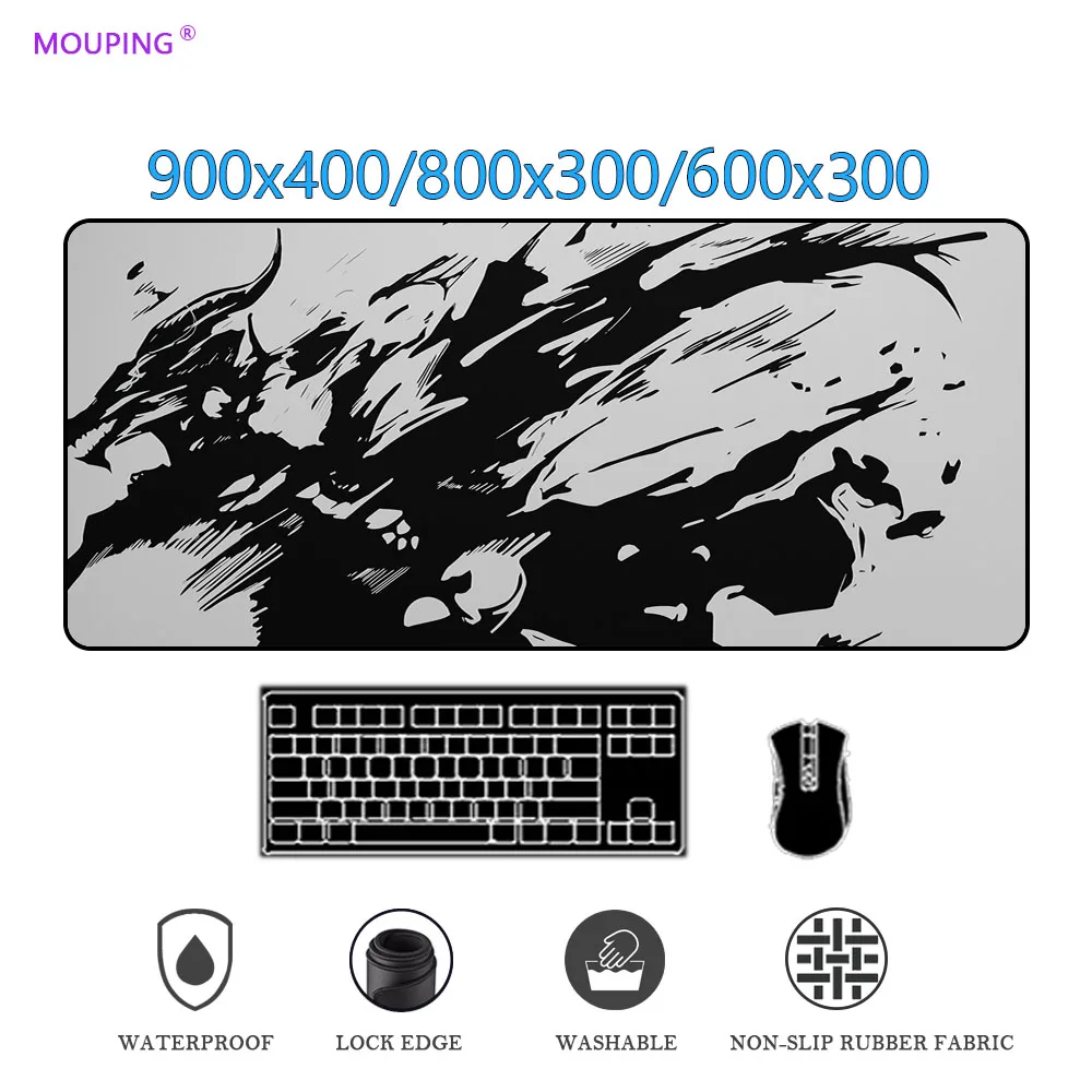 Черный и белый коврик для мыши для настольного компьютера, игровые коврики для клавиатуры, мыши, Аниме Коврик для мыши, большая клавиатура, игровой компьютер, планшет Carpe 900 400