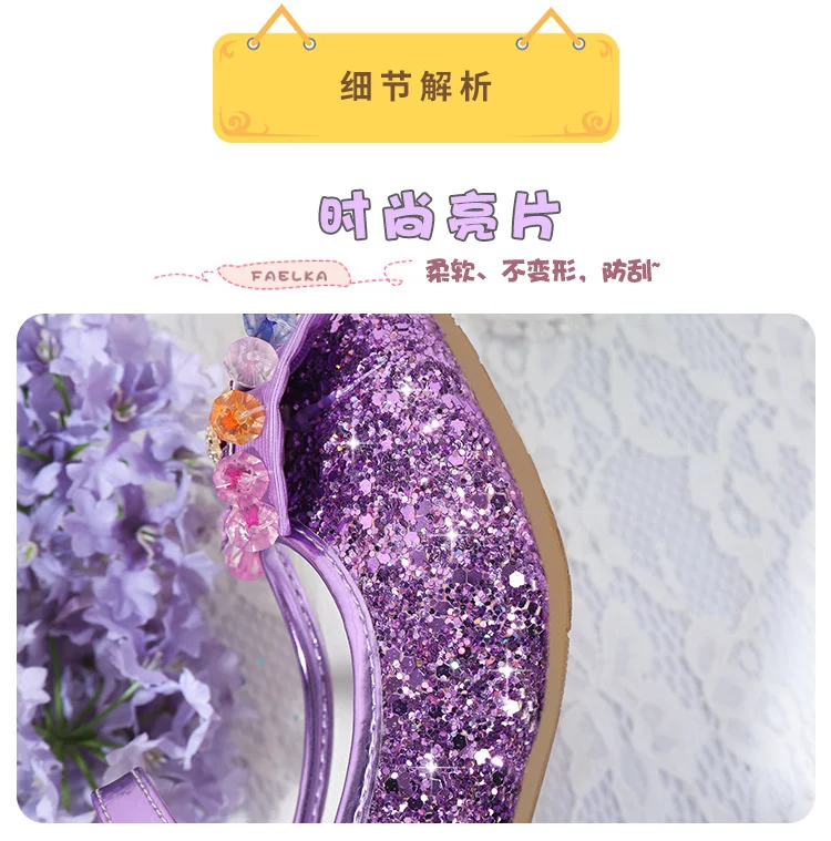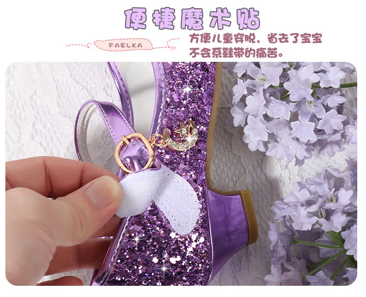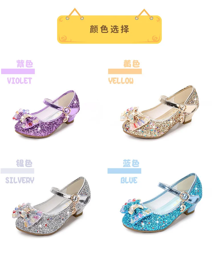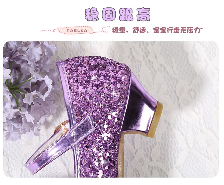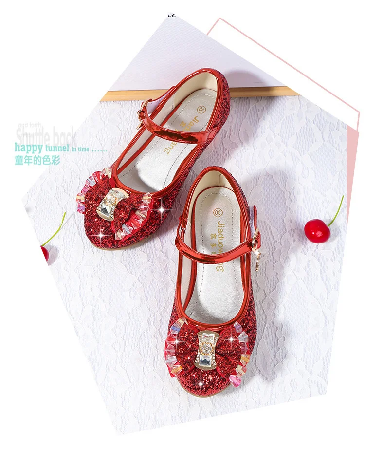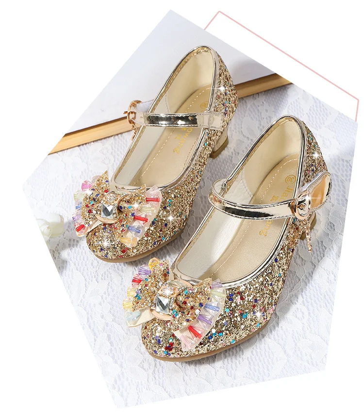 Детские кожаные туфли принцессы для девочек, повседневные блестящие туфли с цветами, на высоком каблуке, с бантом-бабочкой, синие, розовые, серебристые