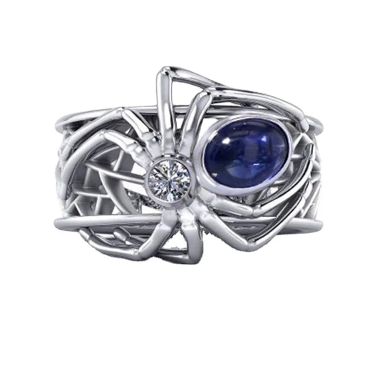 Модное креативное кольцо с синим цирконием и пауком для женщин в стиле панк кольца с животными для вечеринки ювелирные изделия аксессуары Размер 6-10