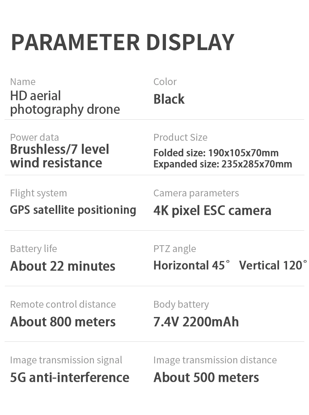 1. Режим GPS и режим оптического потока двойной режим.2,GPS возвращается для начала точки и точки с низкой мощностью и без сигнала.3.GPS Smart следующее: после того, как самолет покинет GPS, он откроет следующую функцию приложения, и самолет будет следовать за мобильный телефон. Кроме того, следующее изображение: обнаружение объекта съемки и автоматическое отслеживание полета.4. Фотографирование и распознавание жестов: в пределах 1-3 м от самолета сделайте фотографический жестик/фотографический жестик перед камерой.5. Маршрут многоточечного планирования полета: самолет автономно летит после предварительно установленного маршрута, игрок фокусируется на съемке.6. Окружность с фиксированной точкой: Найдите центр окружности, а затем перемещайте желаемый радиус окружности через рокер.7. Отслеживайте и напоминайте Дрон: нажмите на значок gps-сигнала три раза, откройте интерфейс карты, карта показывает расстояние закрытия самолета, длину и широту положения.8,.4K HD камера9,2 карданный стабилизатор для сделать фотографии более ясно.