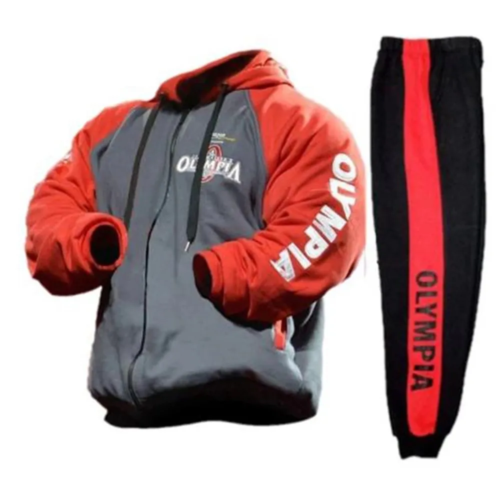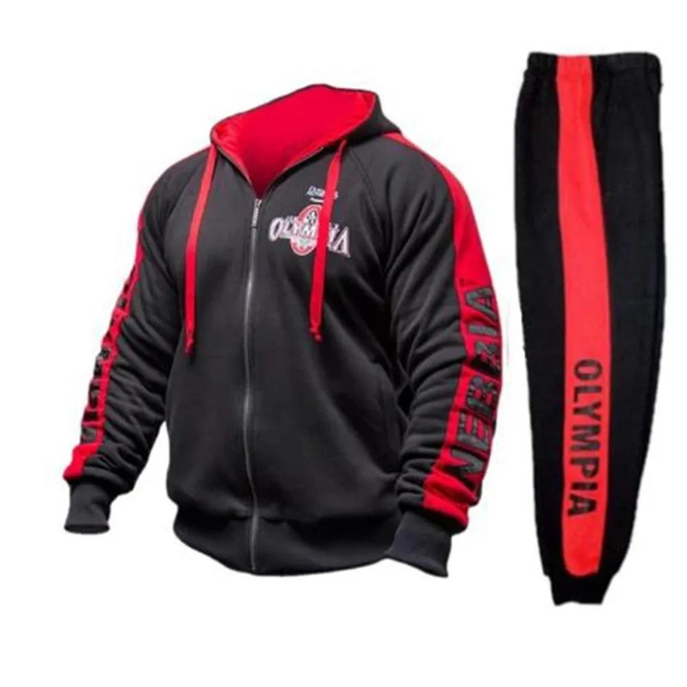 Мужской спортивный костюм для бодибилдинга, осенняя Толстовка и штаны, фирменная спортивная одежда OLYMPIA 2018 года, мужская толстовка с воротником-стойкой, куртка