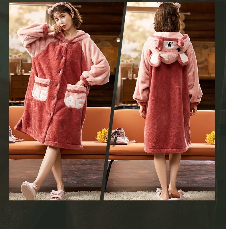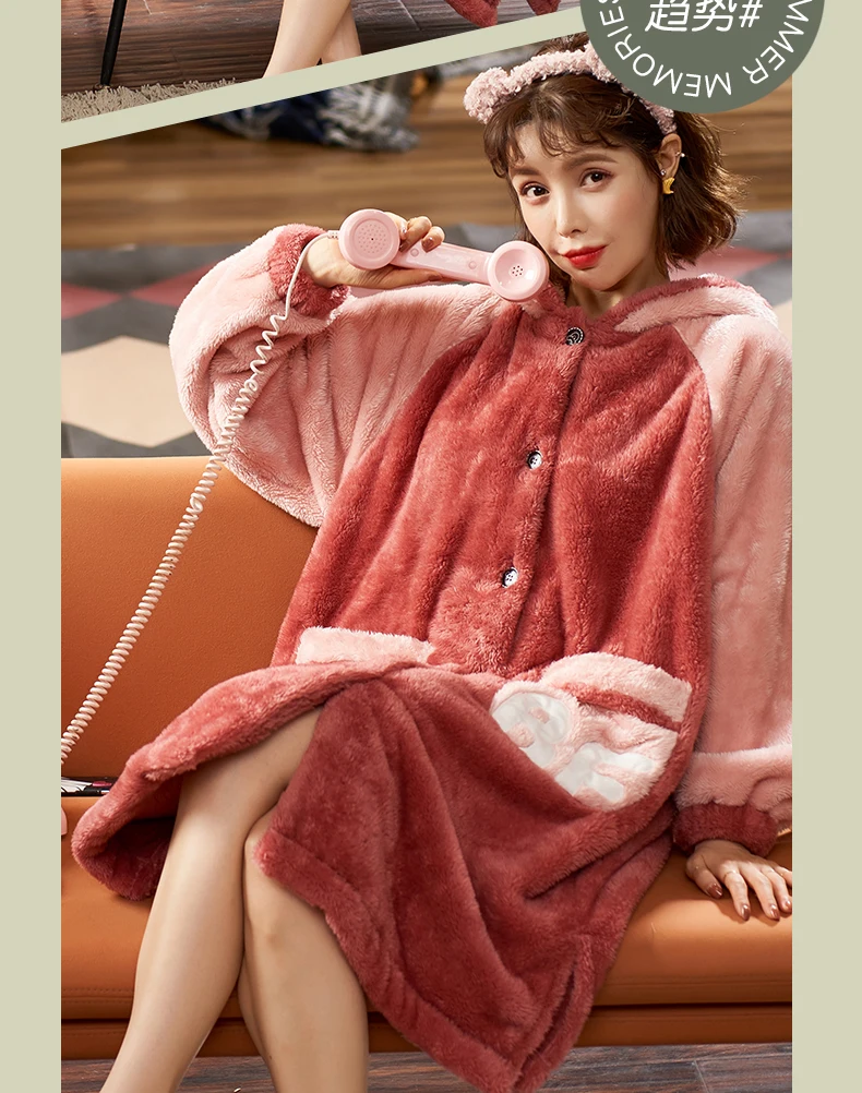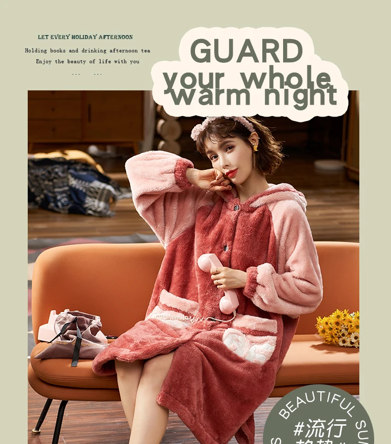 2021 пижамные комплекты с толстым рукавом мультяшная одежда для сна тонкая осенне-зимняя теплая фланелевая Женская Фланелевая пижама набор кораллового бархата ночная рубашка