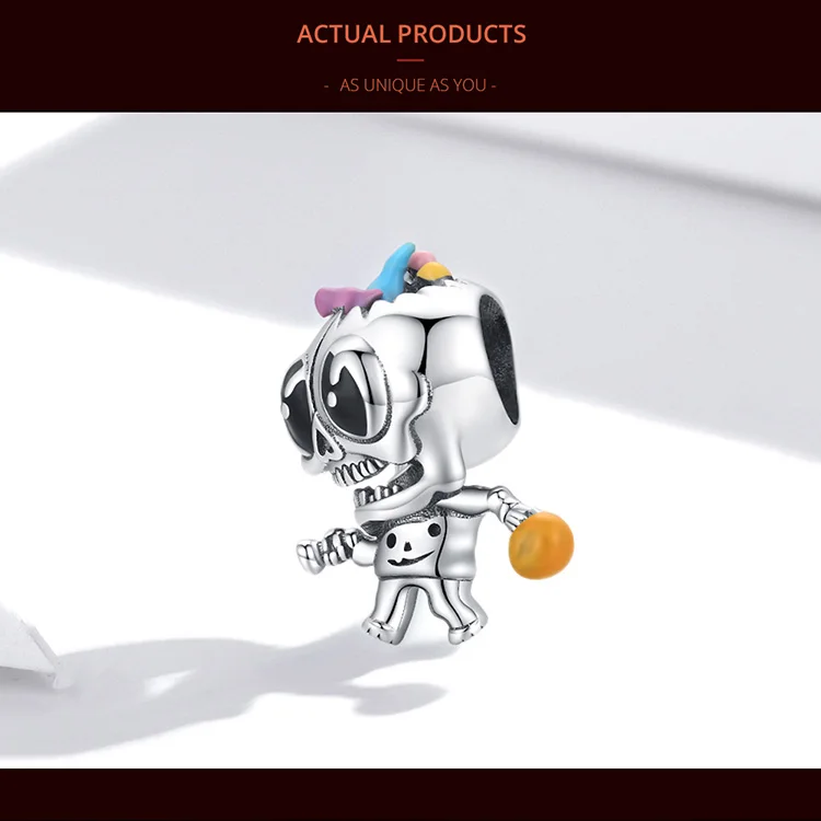Женский браслет с черепом и бусинами, из серебра 100% пробы