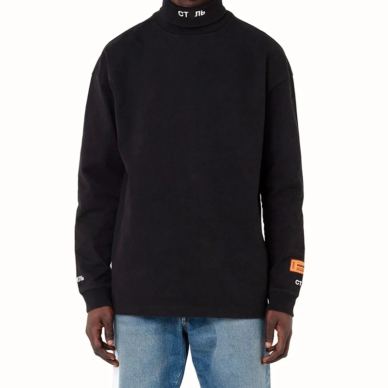 Модная уличная Модная брендовая футболка с высоким воротом и вышивкой в стиле хип-хоп для мужчин и женщин футболка с длинным рукавом Нижняя рубашка