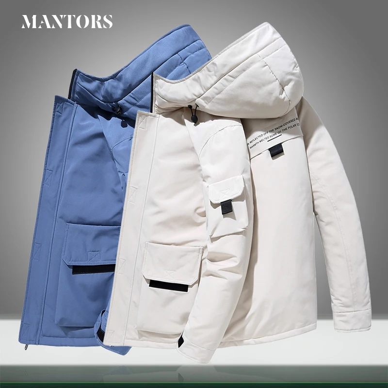 Парка мужская теплая зимняя, утепленная куртка на белом утином пуху, с капюшоном, ветрозащитная Свободная верхняя одежда, пуховик