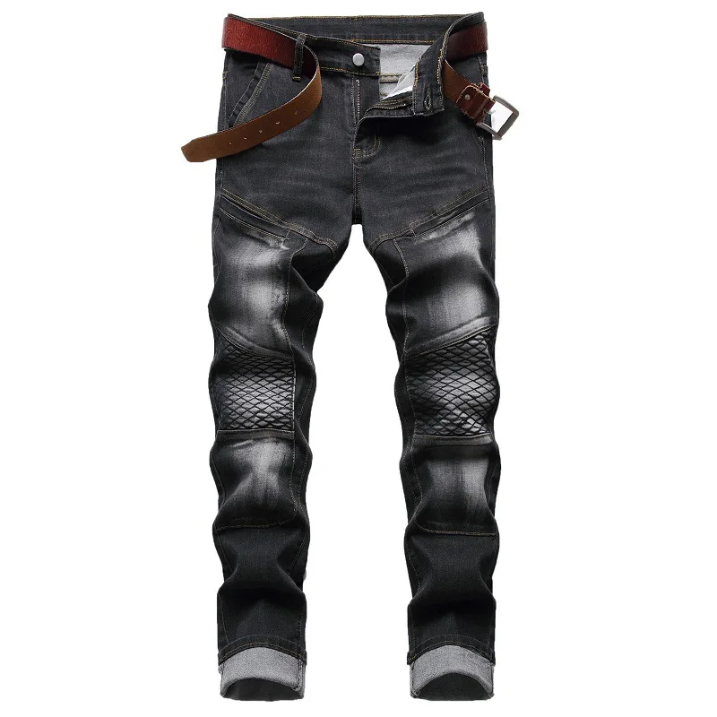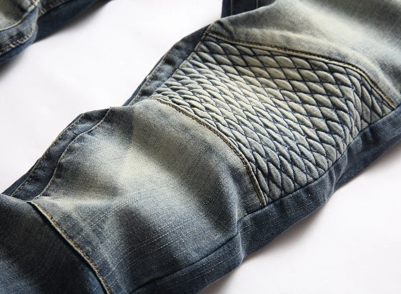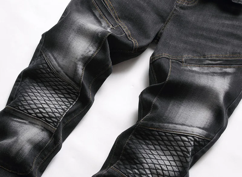 Мужские повседневные байкерские джинсы 2022, облегающие Стрейчевые мужские джинсы со складками на осень и зиму, джинсовые брюки, мужские брюки