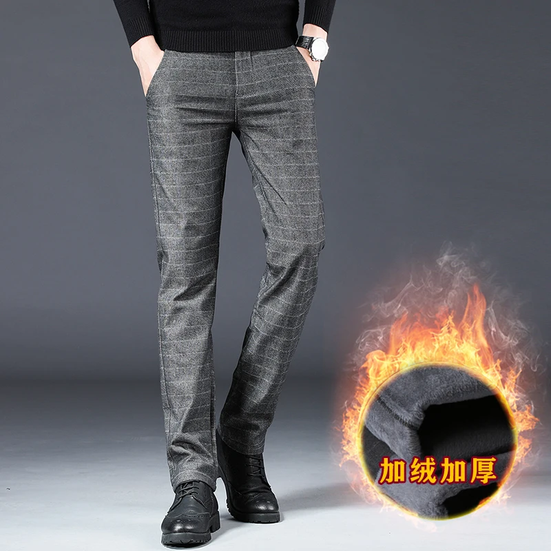 Высококачественные Зимние флисовые теплые мужские плотные повседневные деловые модные эластичные Бархатные Черные Серые брюки