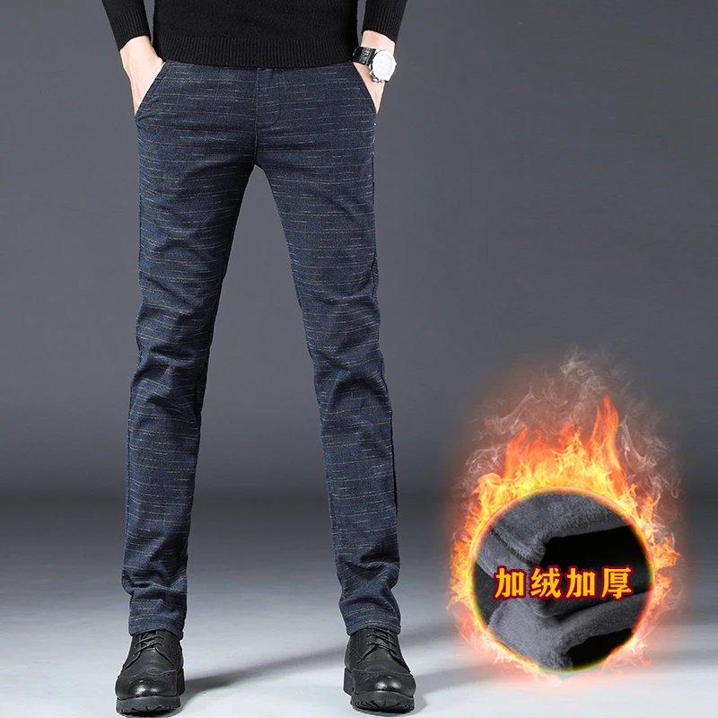 Брюки мужские теплые, повседневные облегающие прямые штаны, плотные...