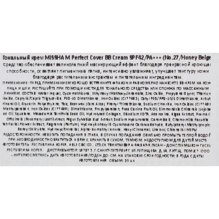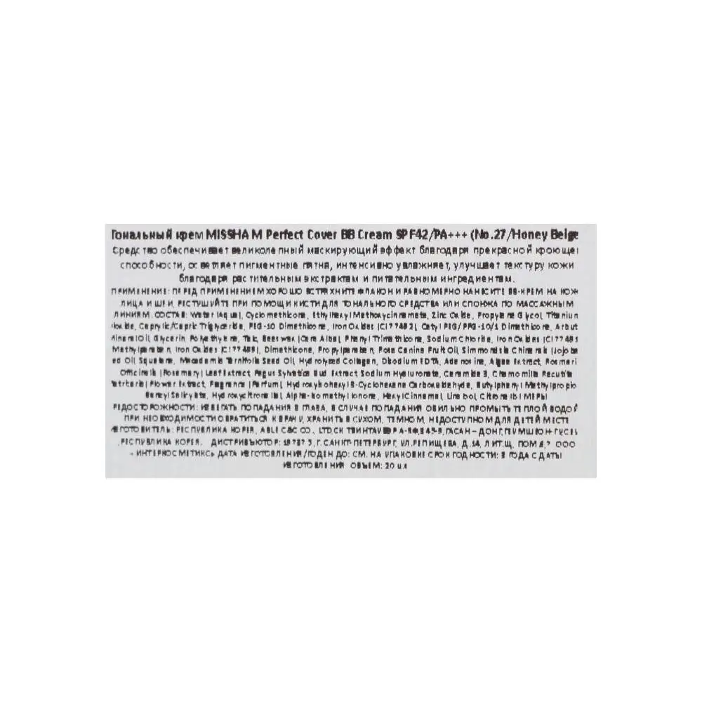 Тональный крем MISSHA M Perfect Cover BB Cream SPF42/PA+++ (No.27/Honey Beige), 20 мл 7344393